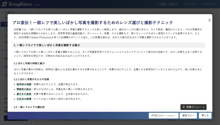 安い、早い、すごい・・!!SEOに強いAIライティングツール「BringRitera(リテラ)」
