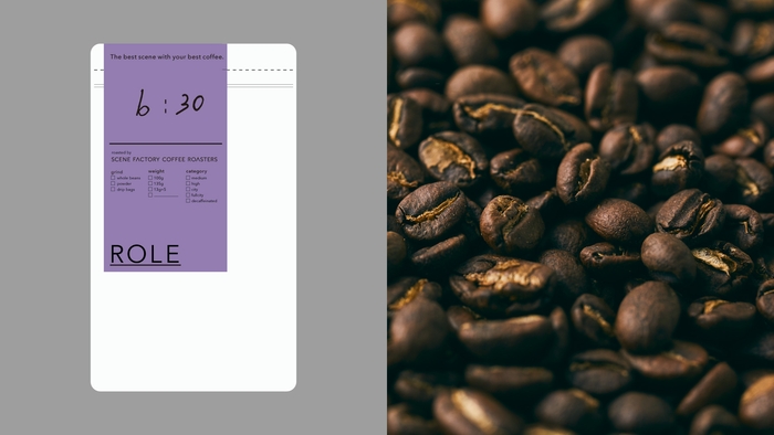 「SCENE FACTORY COFFEE ROASTERS」では、「飲む時間によって選べるブレンドコーヒー“ROLE”(旧“time blend”)」を展開しています。現状のラインナップ「9:00」「12:30」「15:00」「22:00」に、この度新しく「6:30」が加わりました。