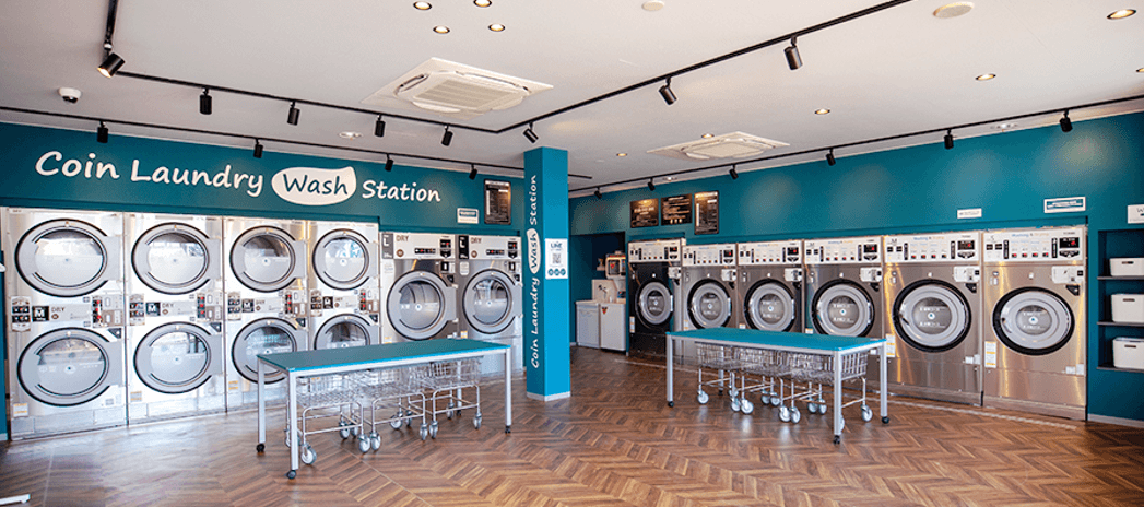 「ウォッシュステーション」は、大型機器で一般の洗濯物はもちろん、スニーカー、ふとん丸洗いまで、大物洗い・乾燥まで手軽にご利用できるコインランドリーです。