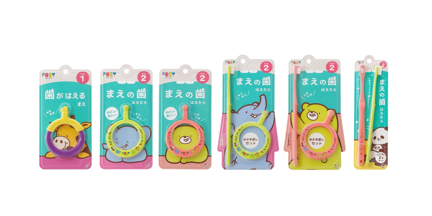 - 乳歯が生える前から生えそろうまでお使いいただけるよう、シリーズで展開しています。ギフトにもおすすめです。