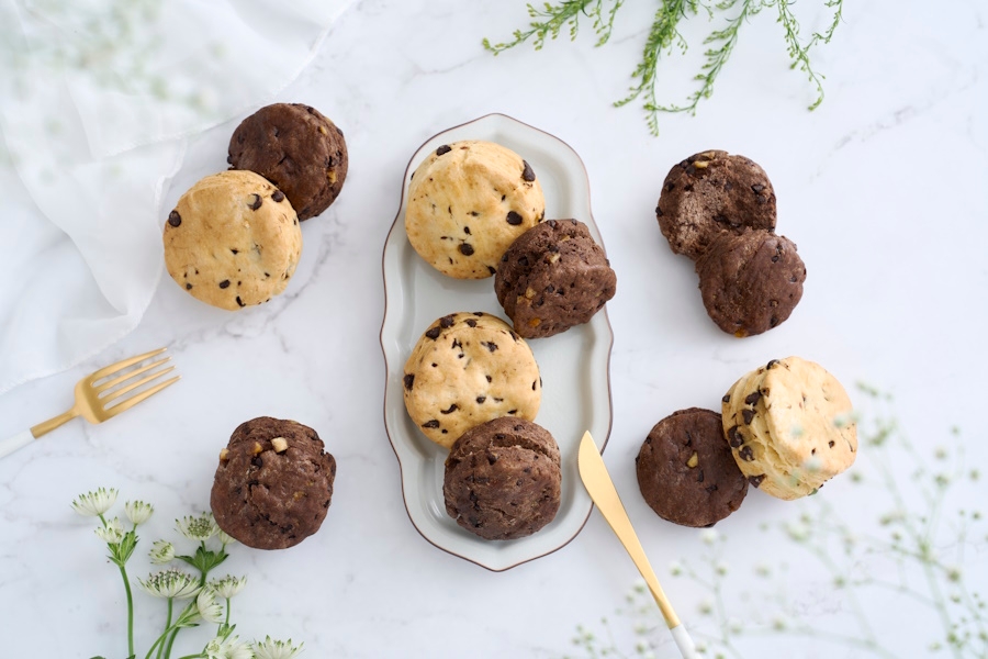 〇スコーン チョコチップ395円(税込)/チョコチップ×オレンジピールダイス435円(税込)