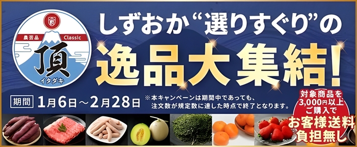 JA全農が運営する産地直送通販サイト「JAタウン」のショップ「しずおか『手しお屋』」は、1月6日(月)~2月28日(金)まで「頂(いただき)」フェアを開催しています。