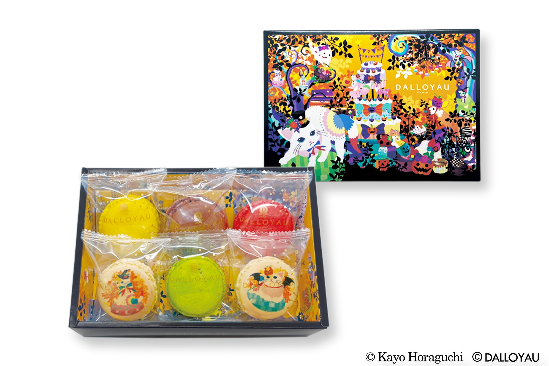 1832年から受け継がれてきたダロワイヨ人気のマカロン6種を、ハロウィン限定パッケージに詰め合わせました。ホラグチカヨさんの世界観を楽しめるマカロンギフトです。