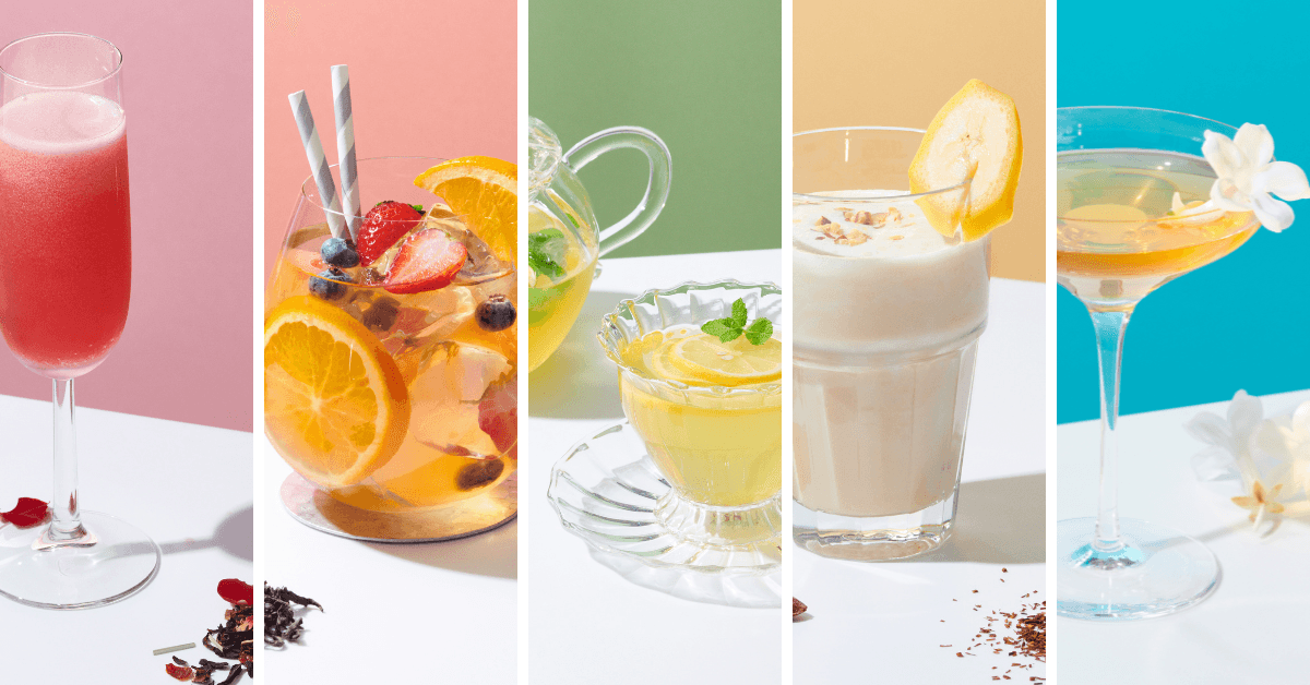 左からBeau “TEA” KOMBUCHA<上煎茶>、<和紅茶やまなみ>、<銀豪ジャスミン>、