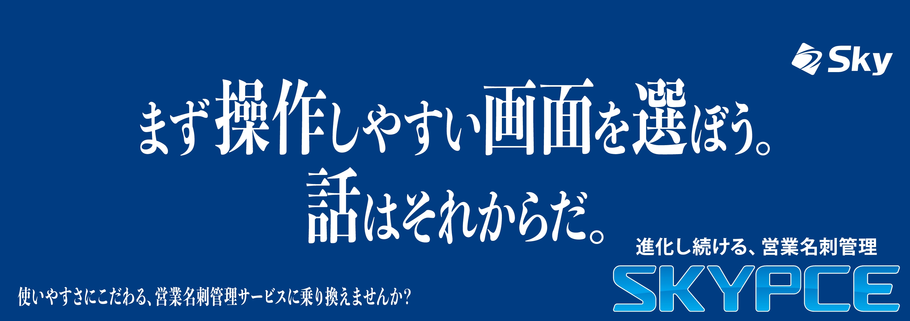 顧客、ビジネスパートナーの開拓など、ビジネスの第一歩となる名刺交換。業務で得た名刺を安全に管理し、営業活動の強化につなげていただくために開発されたのが、営業名刺管理「SKYPCE」です。SKYPCEは、組織全体で名刺情報を共有することで安全かつ効率的な名刺管理を支援。99.9%の正確性が担保された名刺データや、毎日の営業活動を見える化できる仕組み、信頼性の高いデータベースなどを兼ね備え、日々の営業活動をサポートします。