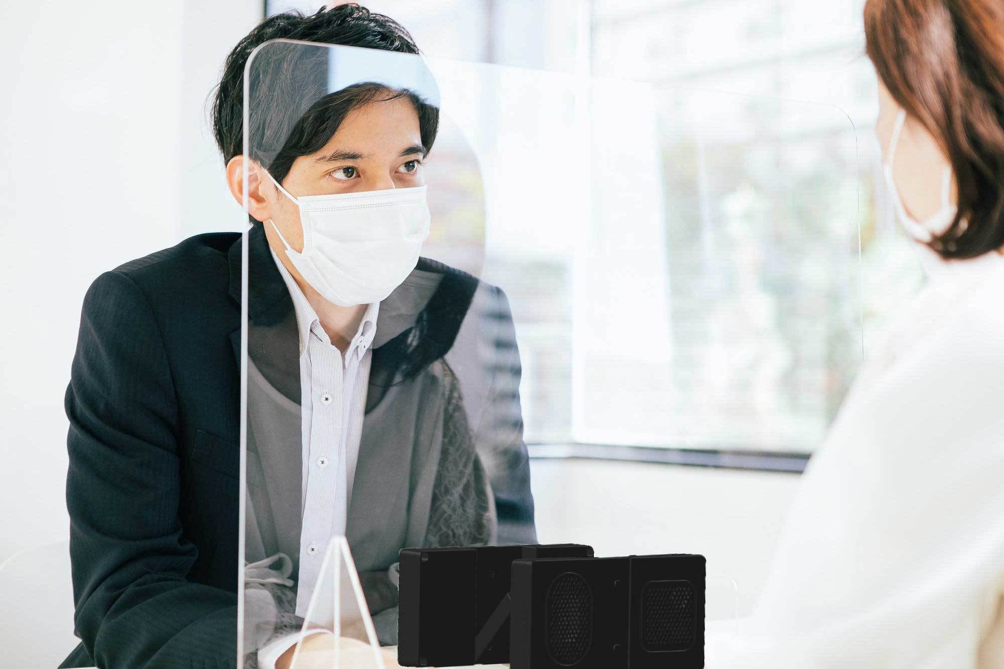 新型コロナウイルス感染予防でアクリル板とマスクが当たり前になっていく世の中で、営業マンは打ち合わせの際、お客様の声が聞きづらい、大事な話を大きな声でしないと伝わらないが、大きな声を出すと周りに気を使ってしまう。商談会で周りがうるさく、相手の声が聞こえないため意思疎通がしっかりとできない。