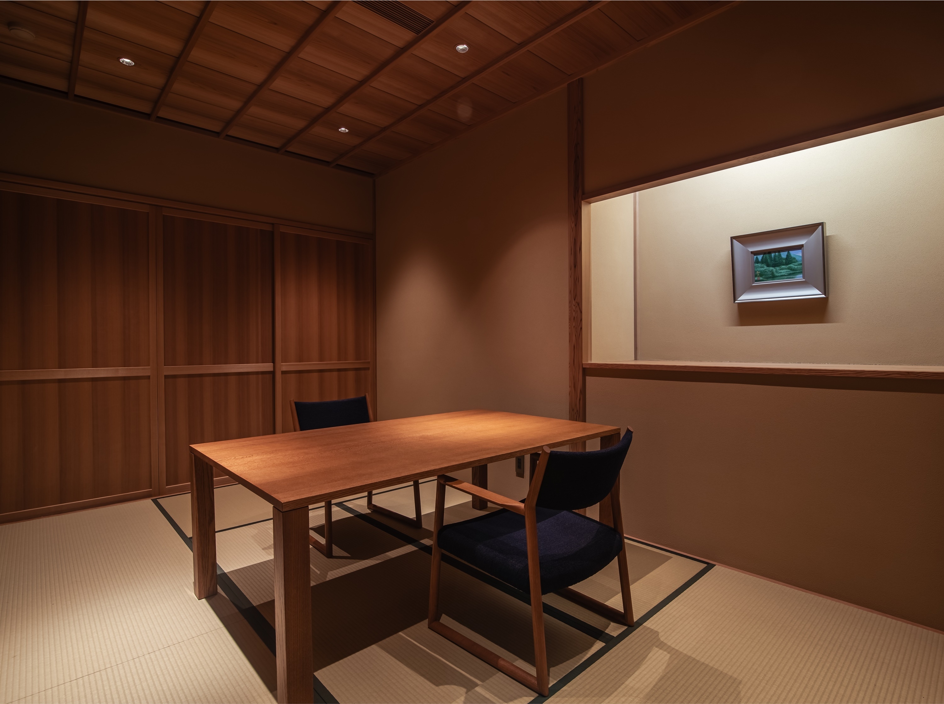 「現代の名工」「黄綬褒章」受賞した料理長・武本 元秀による、地の旬を中心に取り入れた料理の数々をご用意いたします。旬の食材である「鱧」「丹後ぐじ」をはじめとした地元食材と料理長の創意を個室でご案内いたします。