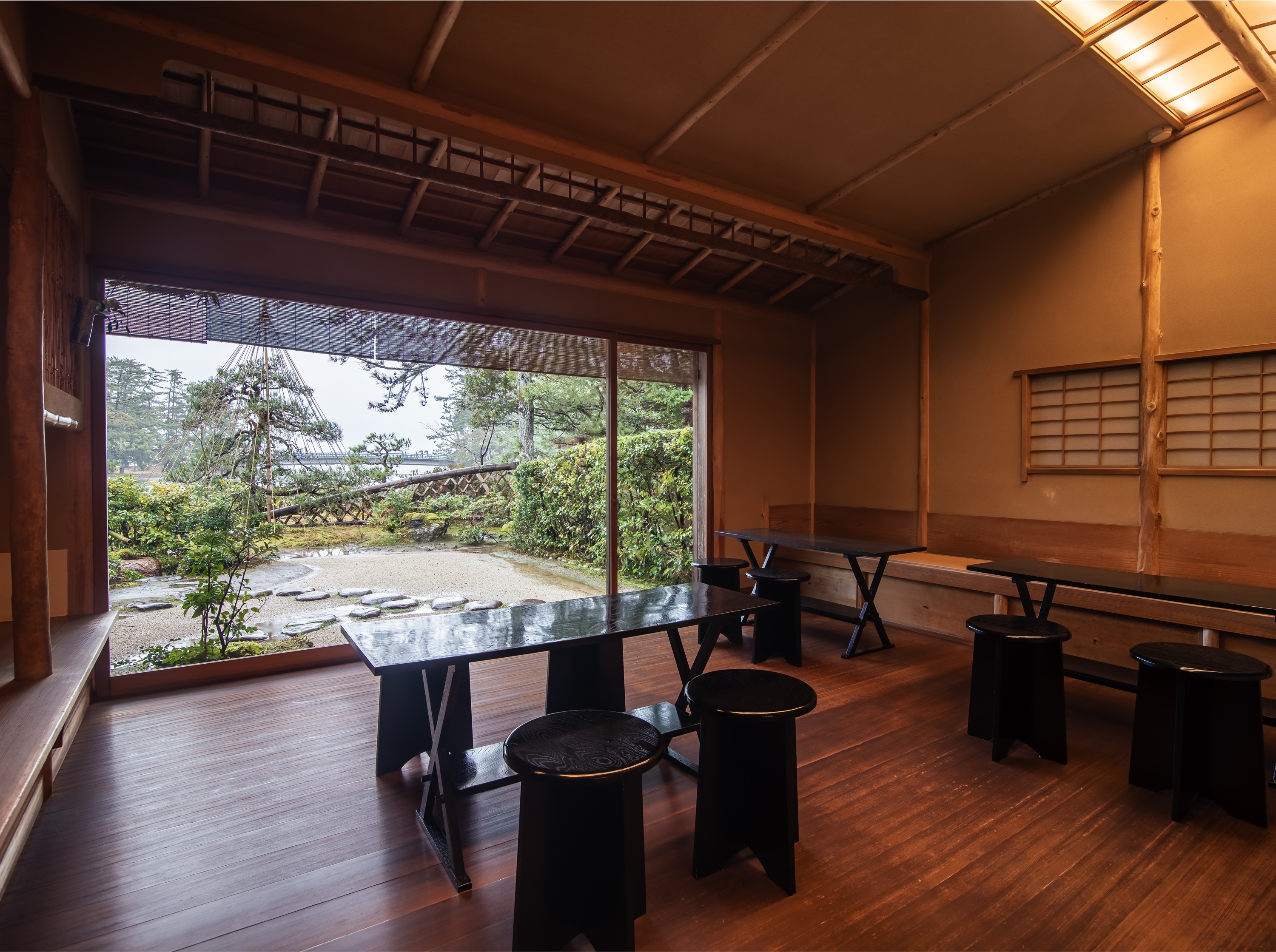 木造平屋建総数寄屋造として建築され、宿名「松露亭」は作家・藤本義一氏より「天橋立の松の葉先に結ぶ露、旅の宿で人の結ぶ縁の深まりに思いを寄せる」という意味を込めて命名していただきました。