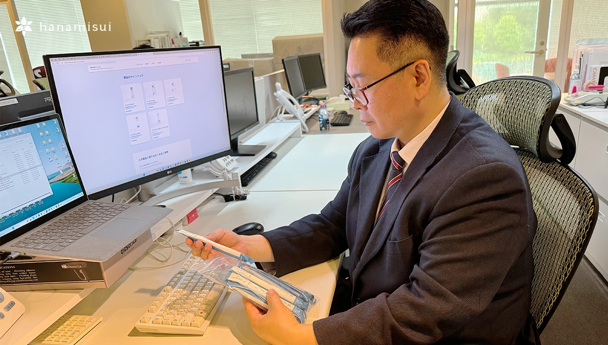 今現在、ハナミスイ製品は韓国の工場で製造したものを日本に輸入して販売していますが、会社としては近いうちに国内生産を実現したいと考えています。アジア市場や他地域への輸出を展開したいです。“Made in Japan”は世界において強いブランド力を発揮します。国内生産のハナミスイ製品を世界に届けるために、その体制を会社としても早く整えたいです。