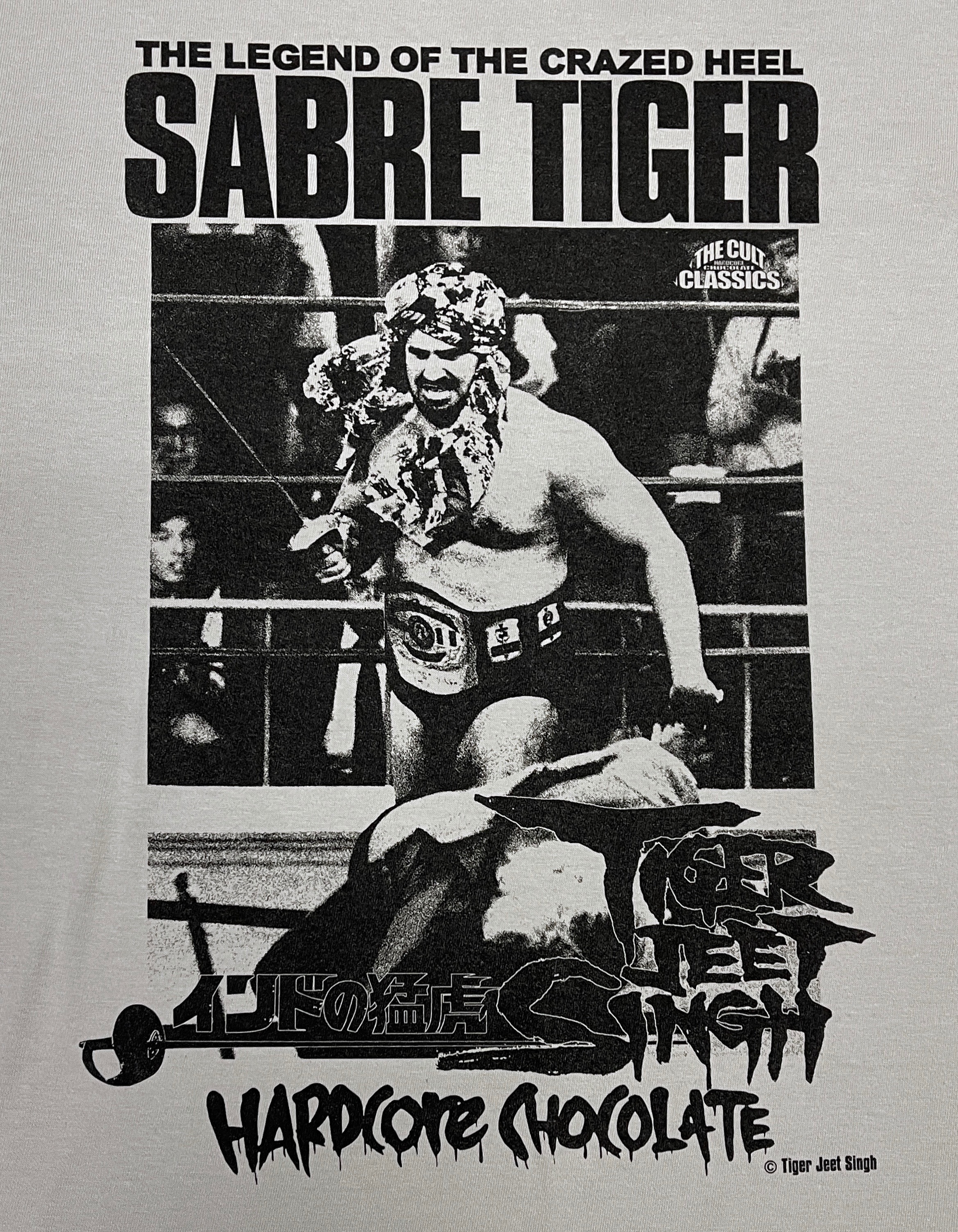 サーベルタイガーTシャツは、新日本全盛期のシンをデザイン。