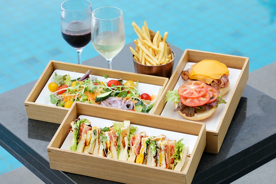 心浮き立つこれからの季節に、ちょっぴり大人な優雅で贅沢なひとときを過ごせるプランをご用意しております。 お昼にはインフィニティプールに併設された、プライベートカバナでのラグジュアリーなバカンスをお楽しみいただけ る「プライベートカバナ ランチ」をはじめ、お子様連れのご家族にもご利用いただける「パーティ・カバナ」を。 夕暮れどきからは、世界最古のシャンパーニュメゾン「ルイナール」とのコラボレーションによる、洗練された空間 「Ruinart Champagne Lounge」にて、ゆったりとした寛ぎの夜をお過ごしいただけます。「フォラージュ(食の探検) を楽しむ」をテーマにした、海と陸の幸を用いた豪華なカナッペとシャンパーニュに酔いしれるひとときを演出します。