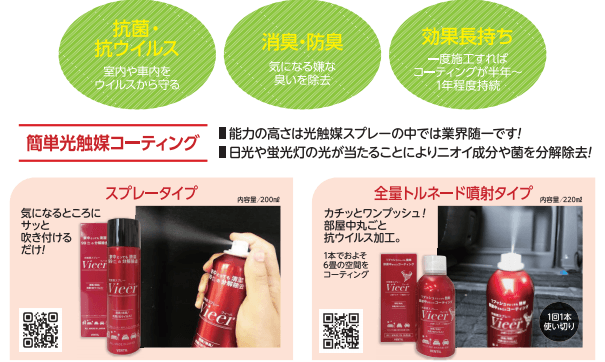 光触媒スプレーVieer(ウィール)とは、消臭・抗菌・抗ウイルスコーティングができる