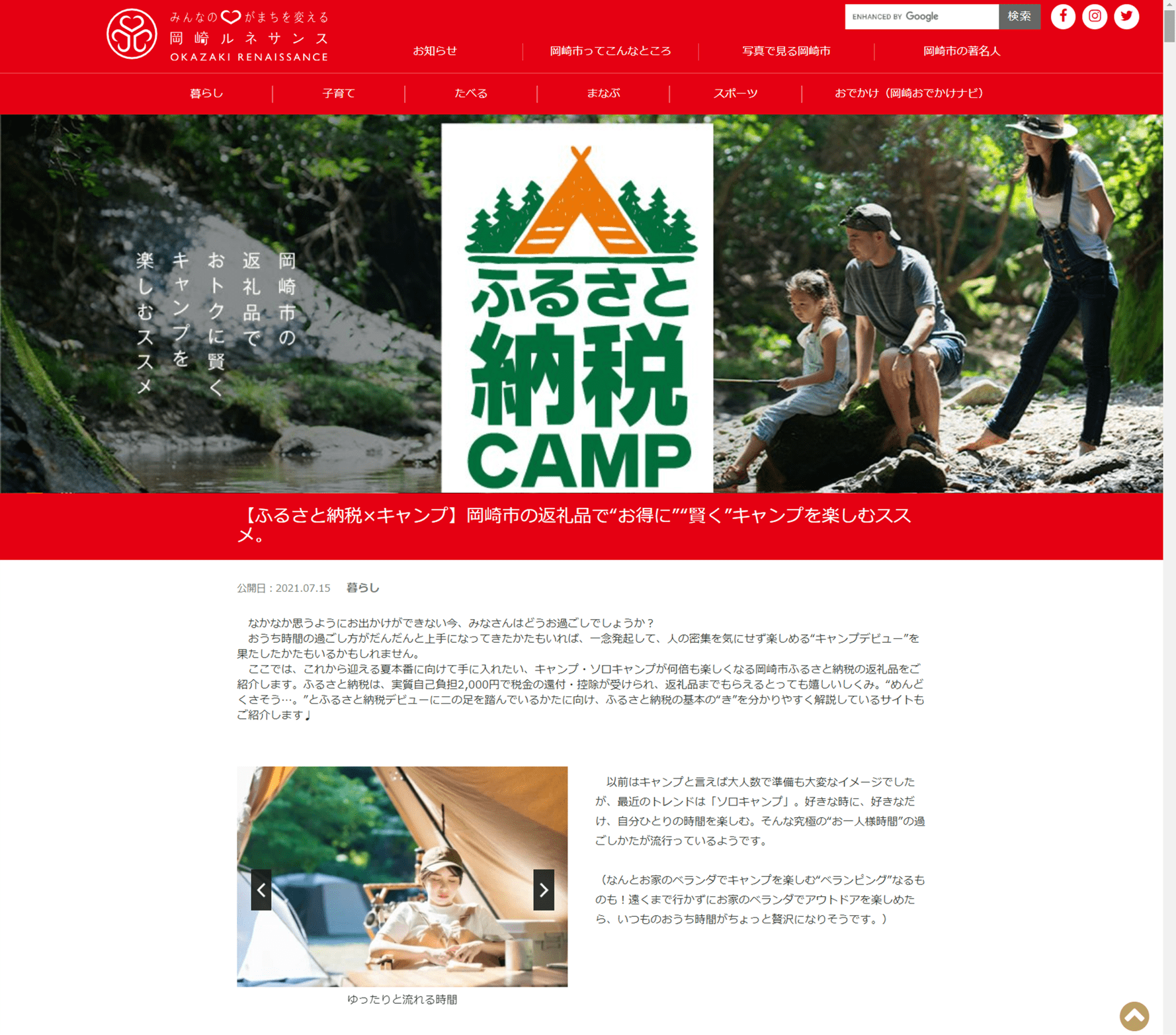 ・ページ名 :【ふるさと納税×キャンプ】岡崎市の返礼品で“お得に”