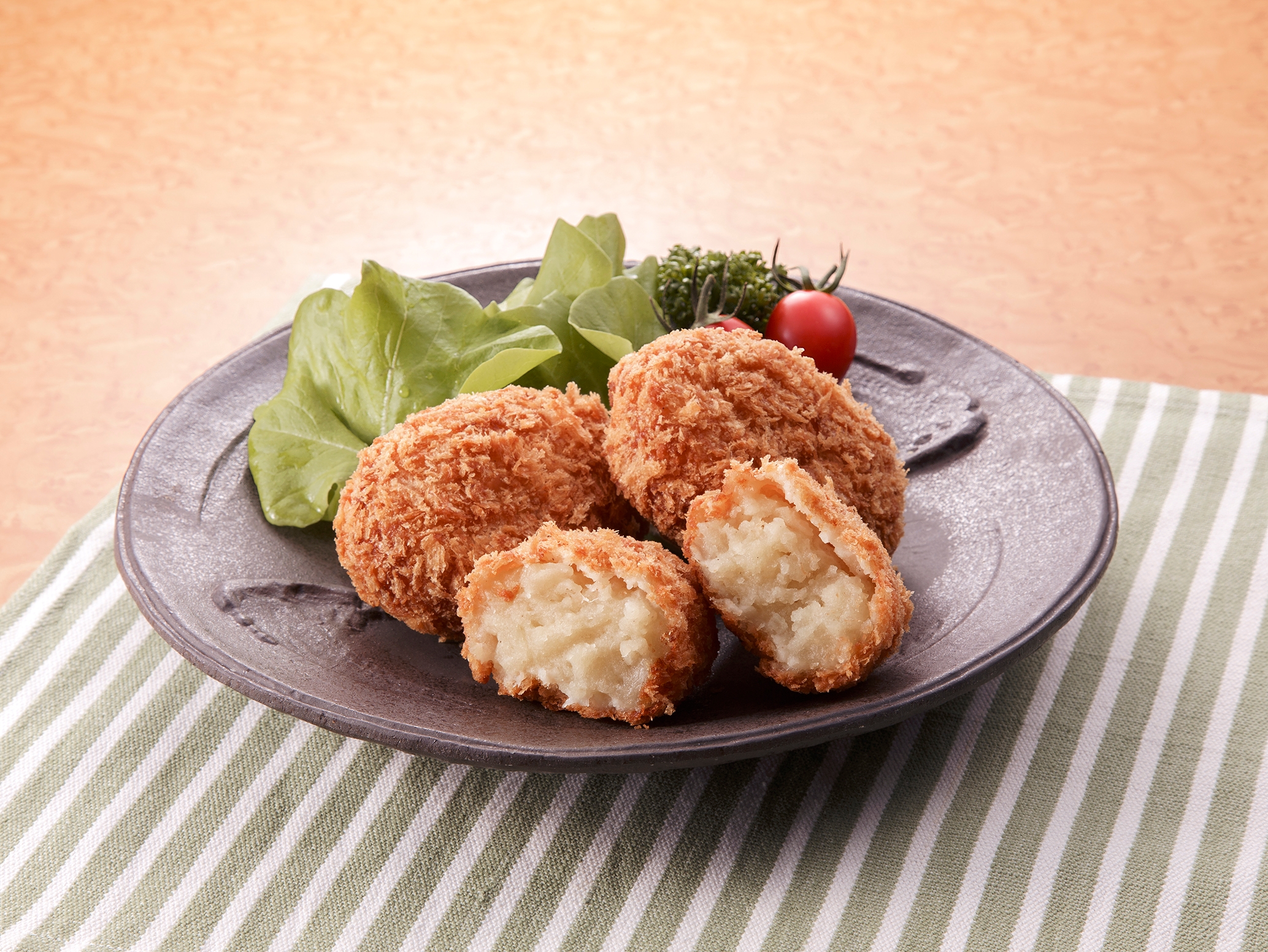 「雪蔵甘熟メークイン(二冬越し)」を使用したホクホクのコロッケも登場します。調味料をなるべく使わないことで、じゃがいもの素材の味を引き立てました。