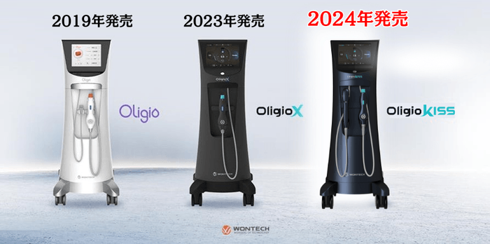 同じようなコンセプトの治療器にはボルニューマやデンシティなどもありますが、オリジオシリーズは美容大国韓国で圧倒的なシェアを誇る治療器です。初代のオリジオから始まり、オリジオXと続き今回オリジオKISSが発売されました。