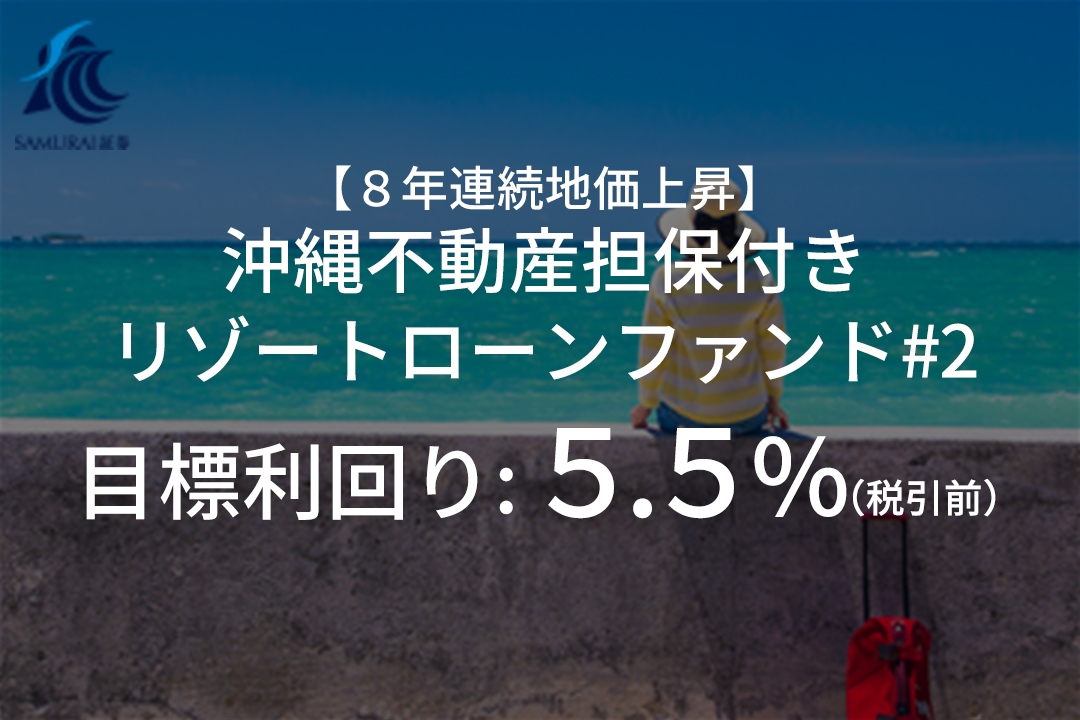 個人投資家にさまざまな投資機会を提供するための新たな資産運用プラットフォーム「SAMURAI FUND」を運営するSAMURAI 証券株式会社(本社:東京都港区、代表取締役社長:山口 慶一)は、新商品『【8年連続地価上昇】沖縄不動産担保付きリゾートローンファンド#2』を公開いたしました。