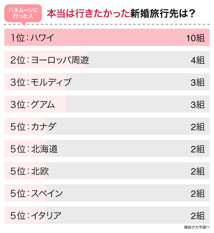 本当に行きたかった新婚旅行の行き先は「ハワイ」が最多