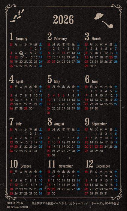 全世界で累計1,490万人以上を動員しているリアル脱出ゲームを企画制作する株式会社SCRAP(本社:東京都渋谷区、代表:加藤隆生)は、謎解き関連の書籍を発行する出版レーベル「SCRAP出版」より、新作書籍『5分間リアル脱出ゲーム 失われたシャーロック・ホームズと10の予告状』を2025年12月19日(金)に発売することを発表いたします。