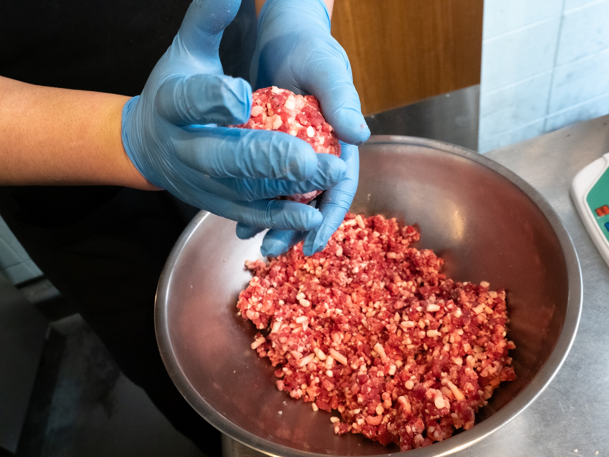 肉本来の食感を残すためあえて粗挽きに挽き、味付けもできるだけシンプルに仕上げました。
