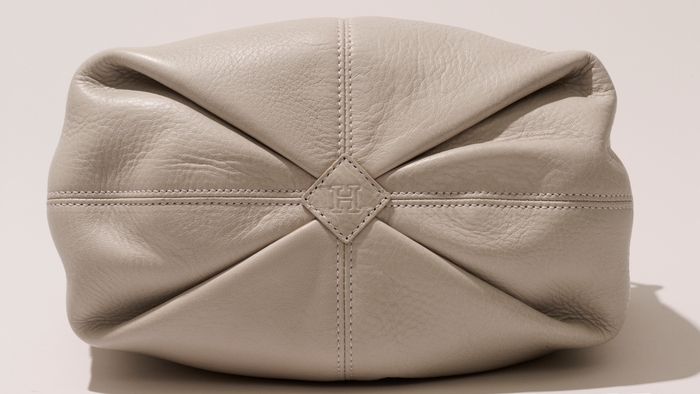 根革(ストラップやハンドル付け根のレザーパーツ)部分に施された『H』のハンドステッチは、ひと針ごとに職人の手で縫われたこだわりのデザイン。