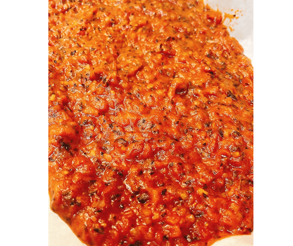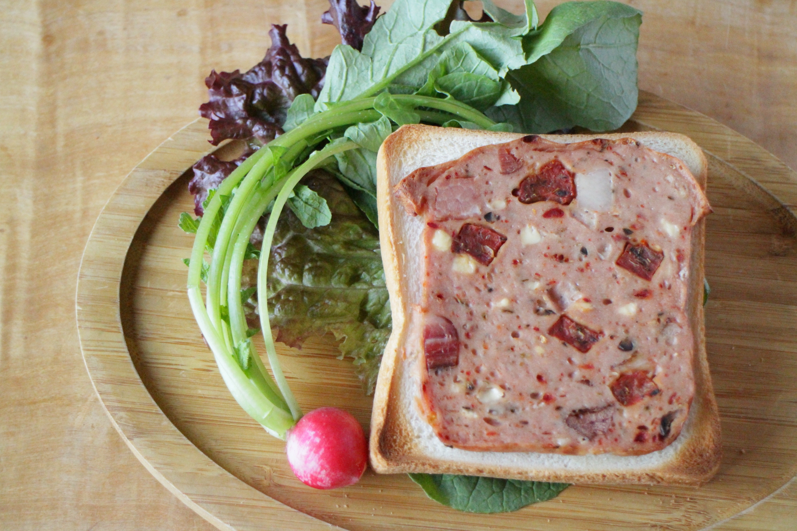 ・トーストで焼いたときの全体のパサつきを抑えるために、スパイスを効かせたオリジナルトマトソースを寒天で固めて、生地に混ぜ込み焼き上げました。しっとりジューシーなピザトーストを作ることができます。