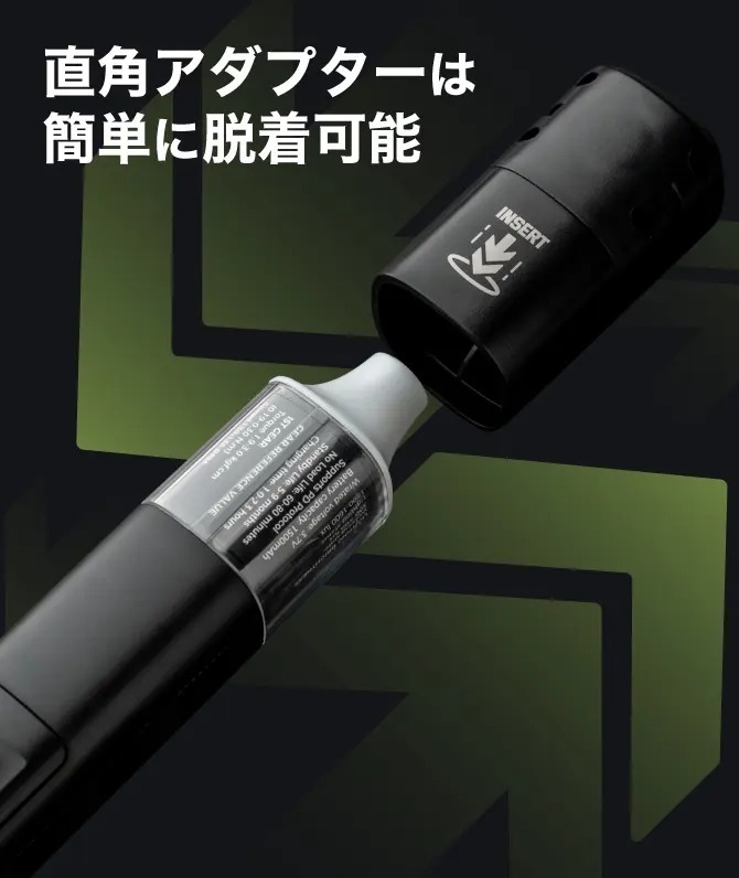 ・超狭小スペースでも作業可能な直角アダプター搭載(90°回転機構)