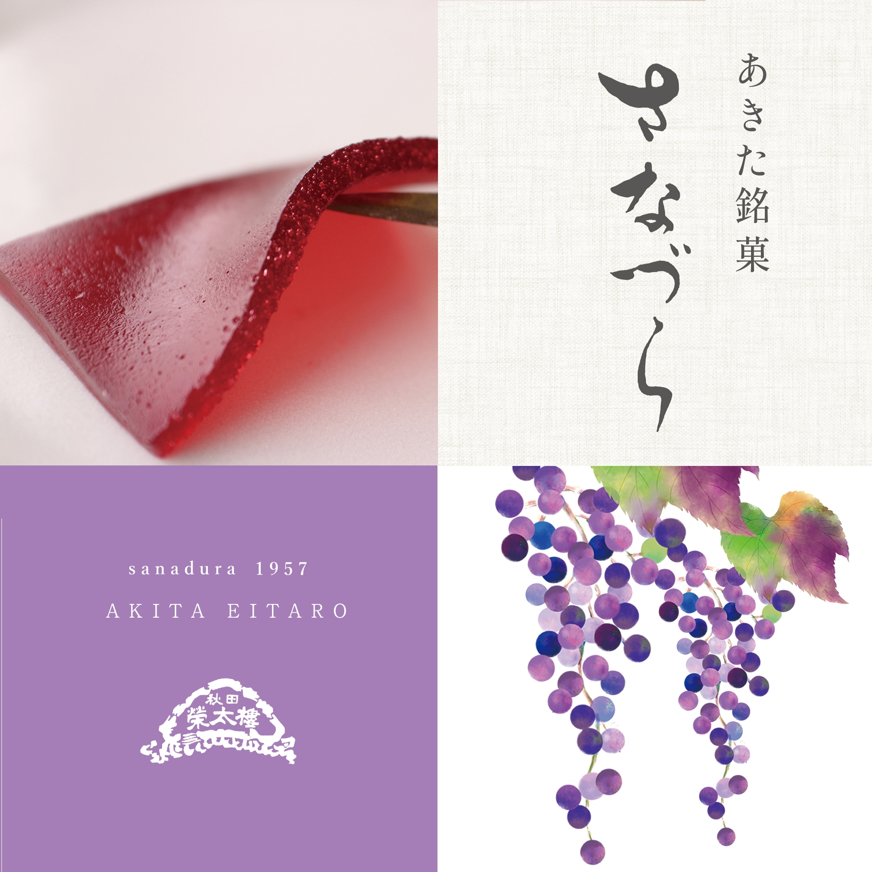 榮太楼は明治16年創業の和洋菓子を取り扱う秋田の老舗菓子舗です。代表銘菓「さなづら」は昭和32年の販売開始から現在まで幅広い世代に愛されるロングセラー商品となっています。創業140周年を迎えた2023年春、66年ぶりに「さなづら」のパッケージを全面リニューアルしました。その後、2023年1月の発売後ご好評をいただいている「北のかざぐるま」に、山ぶどうジャムを使用して作りあげた新バージョンも登場いたしました。