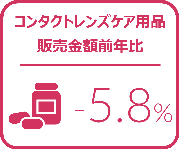 2024年第1四半期(1‐3月)のコンタクトレンズケア用品の販売は、金額前年比5.8%減とマイナスで推移した。店頭では11.6%減、インターネットは0.3%増となり、インターネットが減少からプラスに転じた。