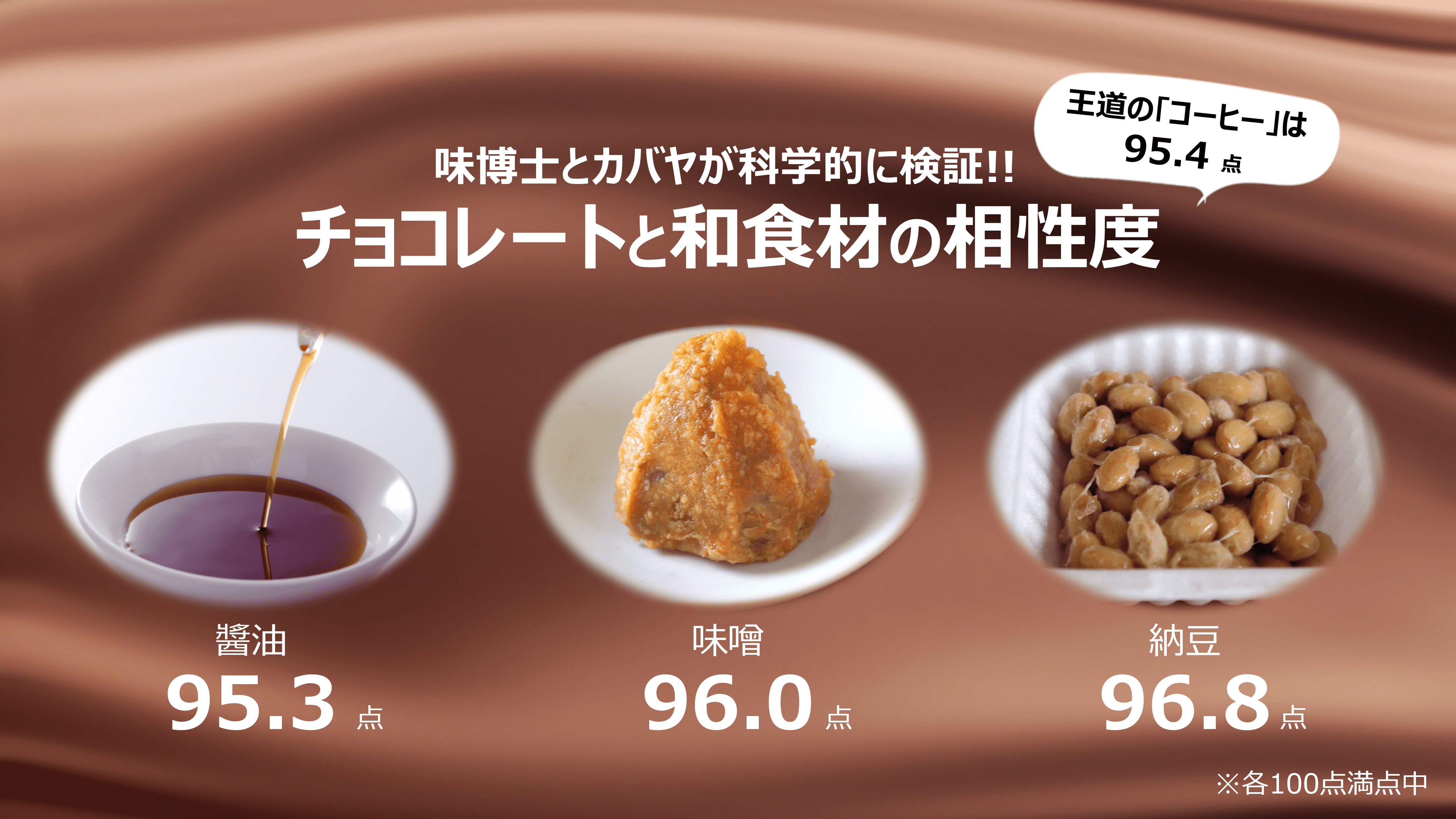 カバヤ食品史上初「チョコレート味覚検証」結果発表 チョコと和食材の相乗効果が明らかに ~チョコ×醤油・味噌・納豆は、王道のコーヒー並みの美味しさ~