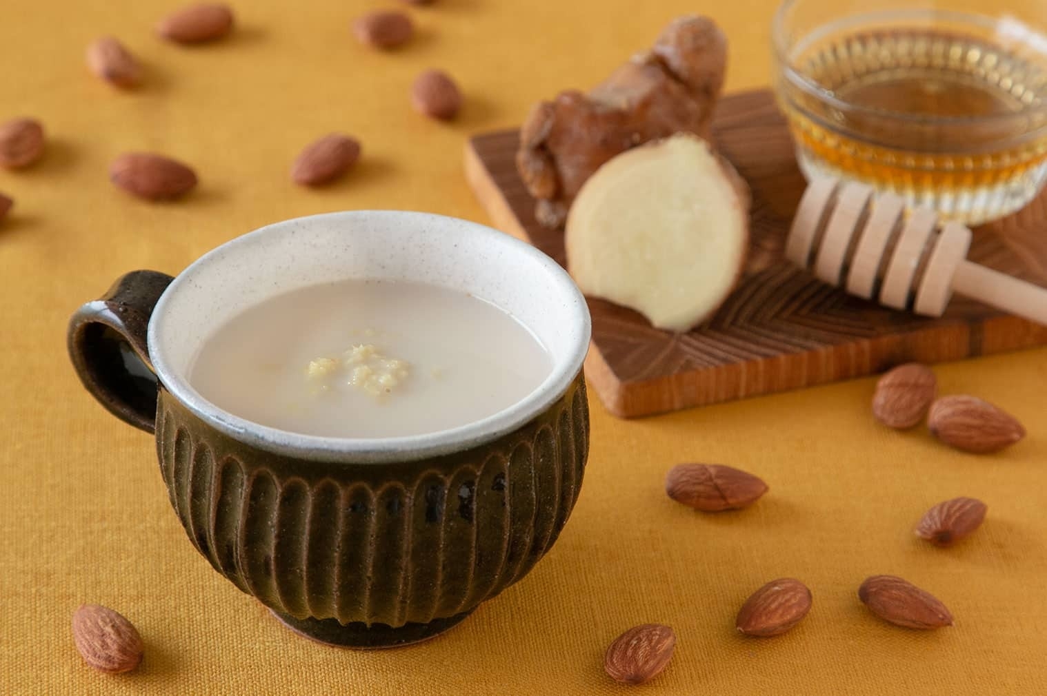 冷え込む朝はホットドリンクで温まりたい…!アーモンドミルクはそのまま飲むだけでなく、カフェラテにしたり、ショウガやはちみつを加えて飲んだりなど、お家でもカスタムが楽しめます。また、乳糖を含まないので牛乳を飲むとお腹がゴロゴロする乳糖不耐症の方や、乳アレルギーの方も安心して飲めるのもポイントです。