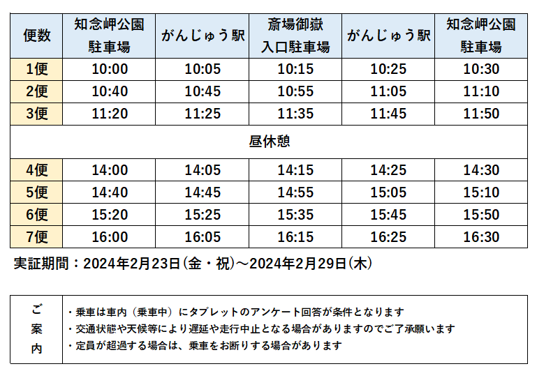■運行ダイヤ : 下表の時間帯に運行します。