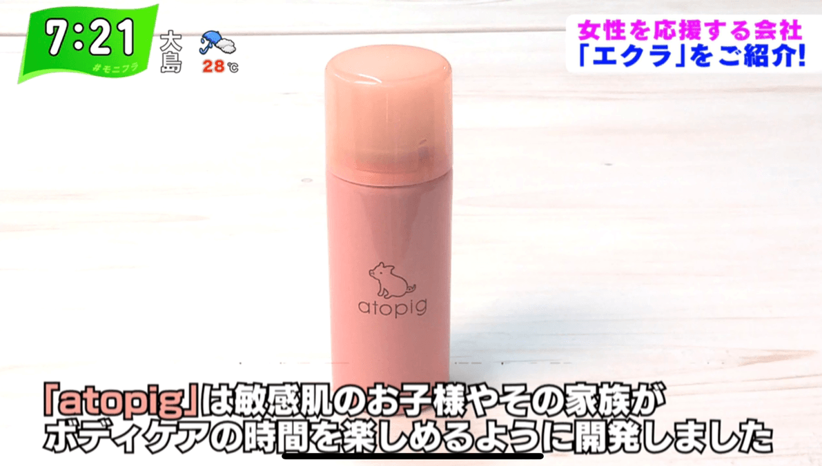 株式会社エクラ(本社:東京都新宿区、代表取締役:本多智史)は東京メトロポリタンテレビジョン株式会社(本社:東京都千代田区、以下TOKYO MX)で放送中の「堀潤モーニングFLAG」にてべたつかないワセリン泡「アトピッグ」を紹介していただきました
