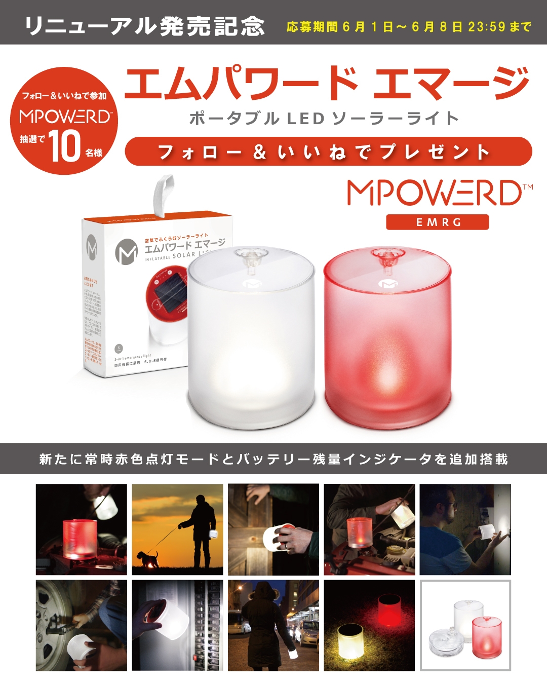 災害時に安心なS.O.S.点灯モード付小型LEDソーラーランタン 「エムパワード エマージ」6月13日(月)リニューアル発売記念 Twitter&Instagramキャンペーンを開催