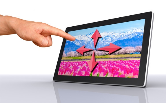 →操作用タッチモニターを上下左右にスワイプすることで、バーチャル空間内の映像を連動させて動かすことができます。