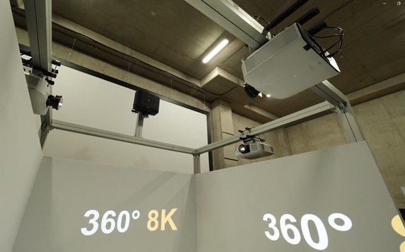 →360度VR映像(実写・CG)をパソコンに入れれば、自動で映像分割され、壁面に投影されます。