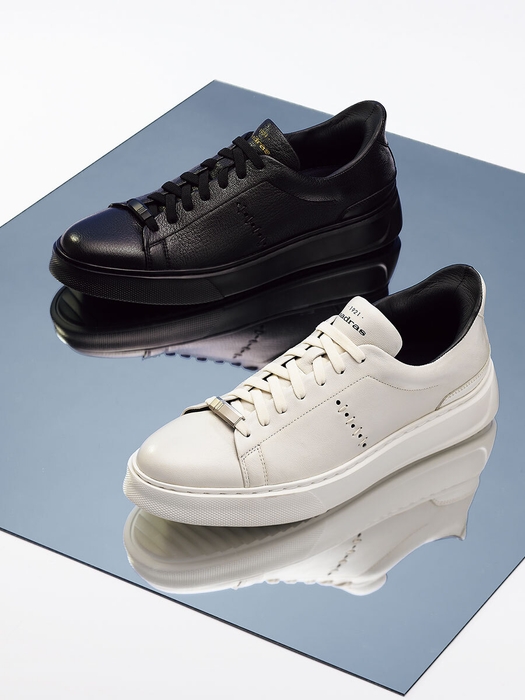 エレガントな存在感が際立つスニーカー「M8881MT」は、品質・安全性・環境への配慮といった厳格な審査をクリアしたソフトキップレザーを使用。シュータンは遊び心あふれるアクセントカラーになっています。