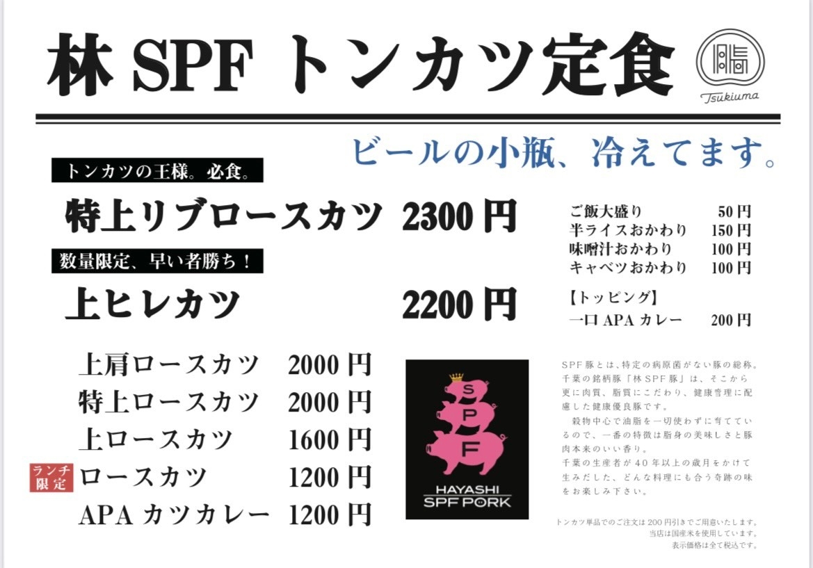 『ツキウマ』は、千葉県産の一流ブランド豚である「林SPFポーク」を使用したとんかつ専門店です。