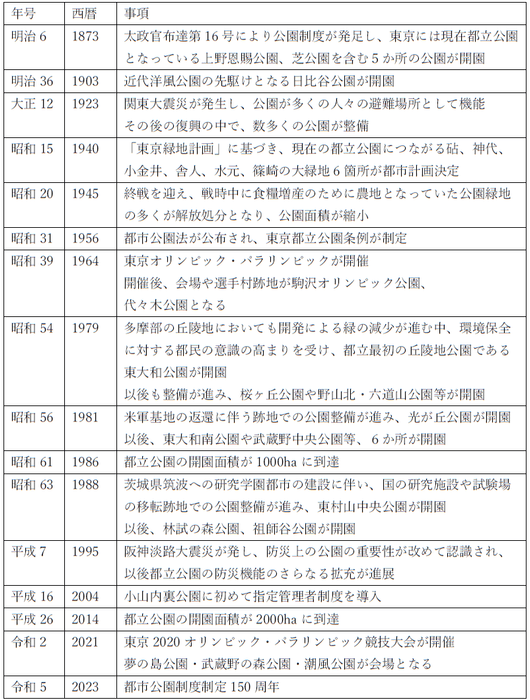明治6(1873)年1月15日の太政官布達第十六号により、日本における都市公園制度がスタートし、同年に最初の都立公園となる上野公園と芝公園が開園しました。