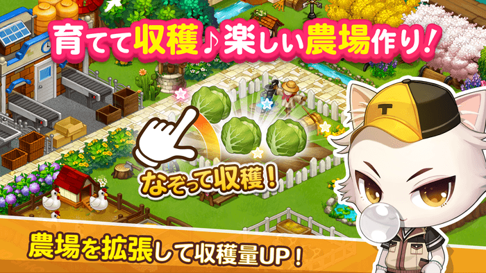 『がんばれ!にゃんこ店長』は、可愛いにゃんこたちの世界で楽しめる、農場作り × スーパー経営シミュレーションゲームです。