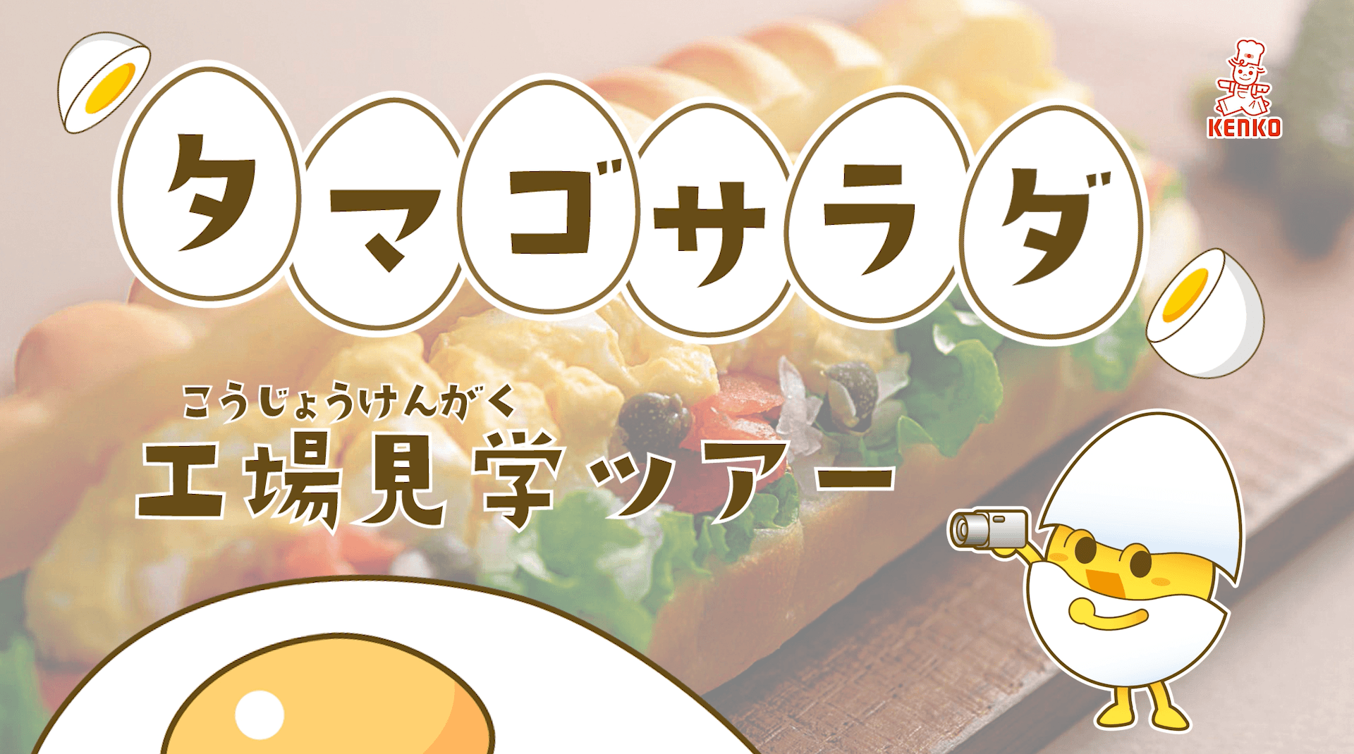 タマゴサラダの製造工程を、当社のたまごのPRキャラクター「ケンタくん」がご案内します。『たくさんのゆで卵をつくる方法』など作り方のポイント、SDGsに関連する取り組み、安全・安心な商品づくり、『たまごクイズ』などを交えながら工場で商品ができるまでを楽しく学べる動画です。(約12分)