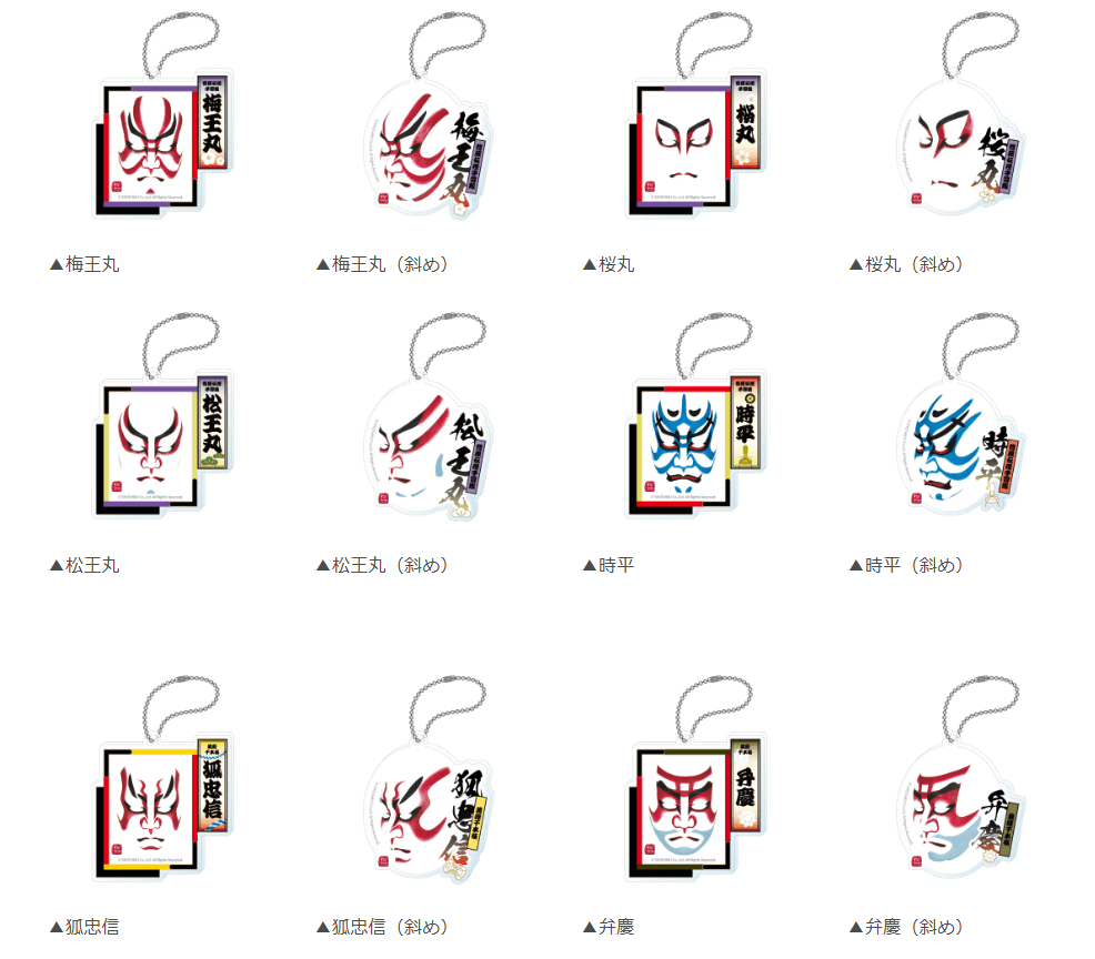 梅王丸/梅王丸(斜め)/桜丸/桜丸(斜め)/松王丸/松王丸(斜め)/時平/時平(斜め)/狐忠信/狐忠信(斜め)/弁慶/弁慶(斜め))