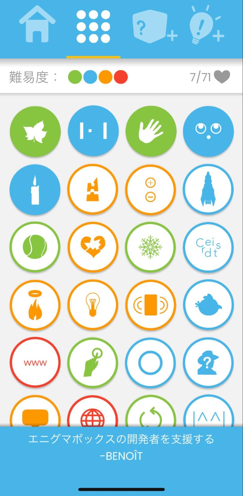 カラフルでポップなアイコンが並ぶゲーム画面から、気になる絵柄をタップするとゲームがスタート。