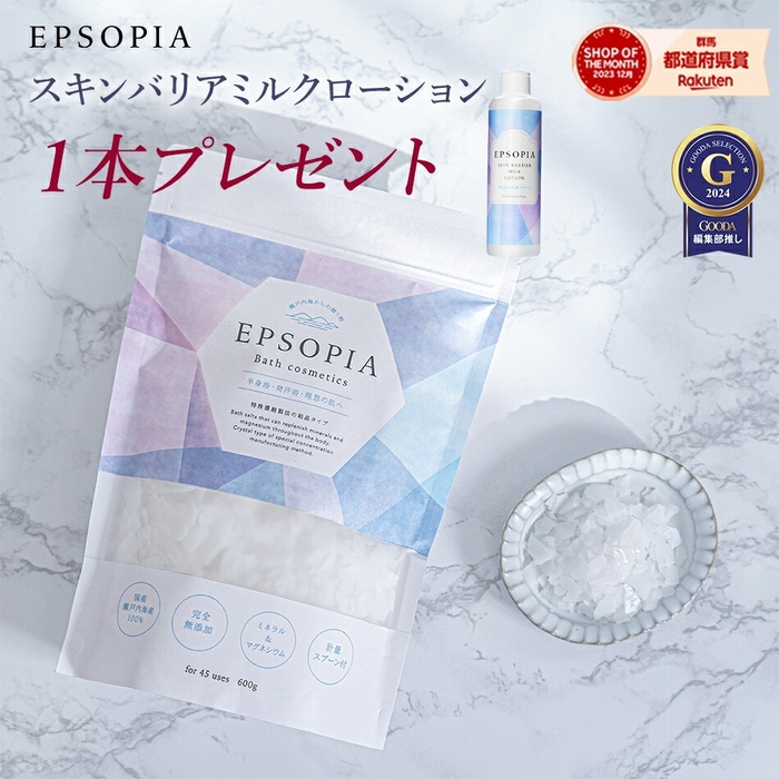 『エプソピア』は瀬戸内海のにがり100%を使用した日本製のバスソルトで、楽天バス用品ランキングにて度々1位を獲得(※1)した人気浴用入浴料ブランドです。