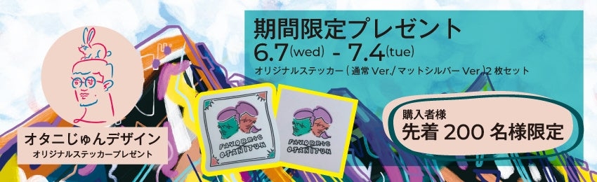 FAVORRICにオタニじゅんが参加したことを記念して、下記期間中FAVORRIC公式サイトでご購入のお客様 先着200名様に「オタニじゅんデザインオリジナルステッカー(2枚入り)をプレゼント!