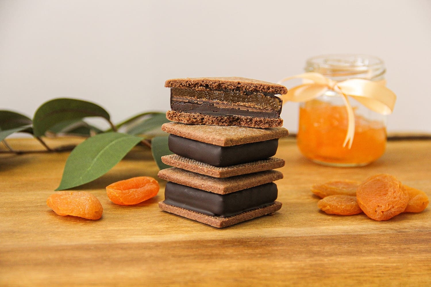 自社農園で育てた完熟のアプリコットを贅沢に使用したフレッシュな風味のチョコサンド