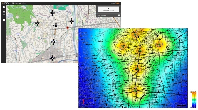 TOAはこの「防災用スピーカー」の性能をより高めるため、導入を検討する自治体を対象に、専門技術チームによる音響シミュレーションと鳴動試験も実施しています。地形や周辺環境を考慮した独自の音響設計により、聞こえないエリアをなくし、「いつ、どこにいても防災情報がいち早く得られる」街づくりに、音で貢献しています。