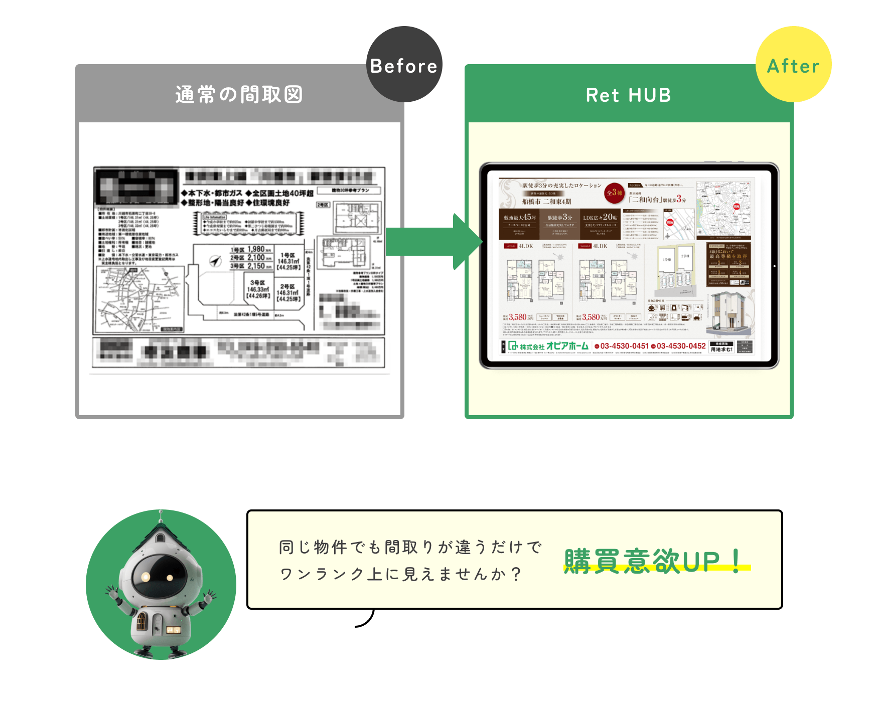 不動産広告会社が本気を出した新サービス「RetHUB」は、不動産業界の常識を変えることのできる日本初の販促物作成・業務効率化ツールです。