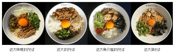 ●四代目オリジナルの「近大味噌まぜそば」と、初代から三代目までの「近大まぜそば」「近大魚介塩まぜそば」「近大油そば」の4種すべてのメニューを販売