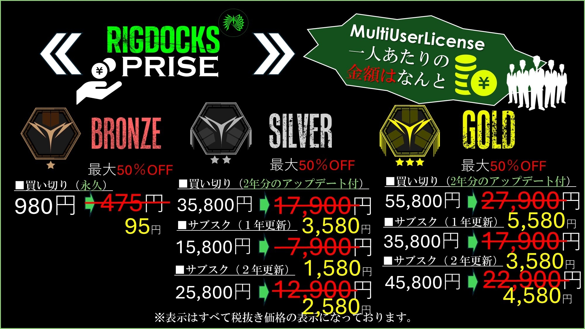 新機能MultiUserLisenceによりそのまま継続利用で5人分のアカウントが付与されるため一人あたりの金額はさらに5分の1になります。