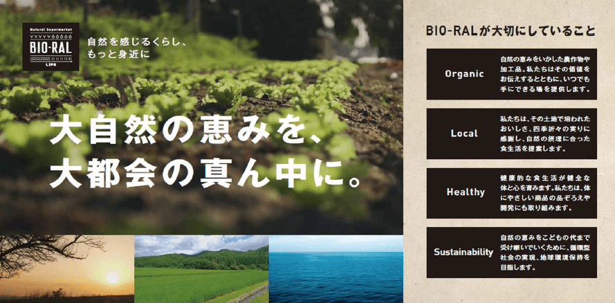 健康や環境意識の高まりからオーガニック市場が拡大しており、「人々の健康な暮らしを支えるとともに、地球環境にやさしいサスティナブルな世の中の実現」を目指すべくビオラル事業を展開しております。「ビオラル新宿マルイ店」でも、自然をもっと身近に感じていただける暮らしを支えるべく、ワクワク感のあるこだわり商品とサービスをご提供いたします。